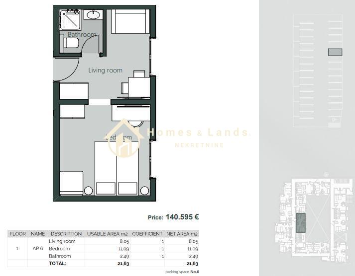 • Površina nekretnine 21.63 m²