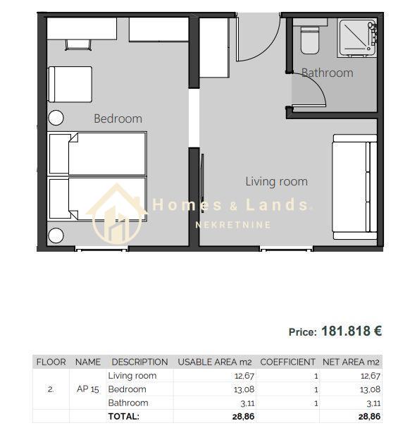 Površina nekretnine 28.86 m²