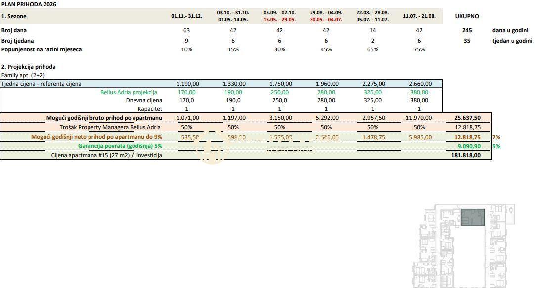 30 namještenih i etažiranih apartmana veličine 15–30 m²