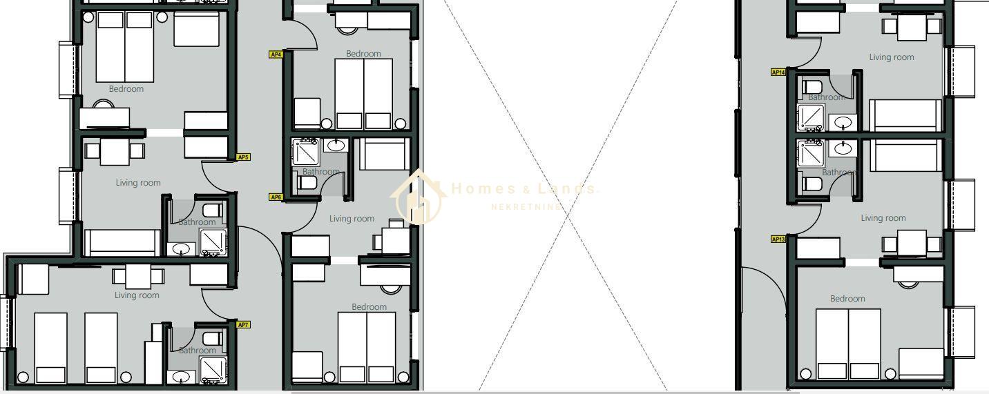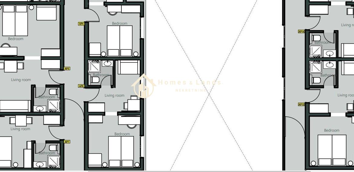 (mogućnost spajanja dvaju apartmana u veći stambeni prostor) -