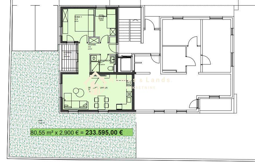 Površina nekretnine 80.55 m²