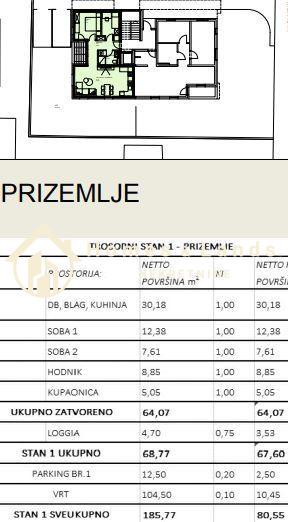 Sesvete,3-soban stan(S1)81m2 s vrtom i parkingom u zgradi s liftom