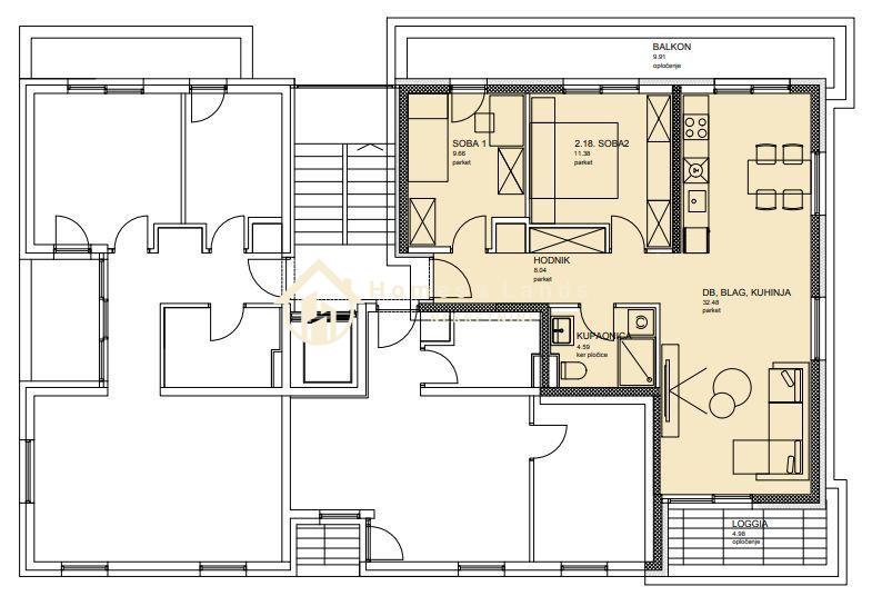 - Stan S1 prizemlje, prilagođen za kupce sa posebnim potrebama (širi ulaz,štokovi,više prostora u kupaonici)