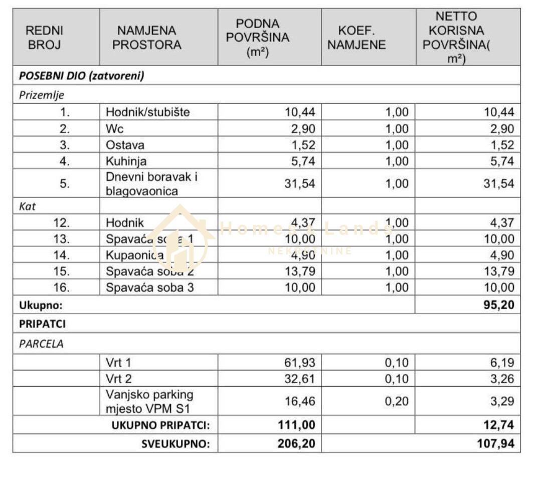 Prodaje se moderan dvoetažni stan (S1) ukupne korisne površine 190 m² (stan 95 m² + dva vrta ukupno 95 m²) u novogradnji u mirnom i uređenom naselju Sesvetski Kraljevec, gradska četvrt Sesvete.
